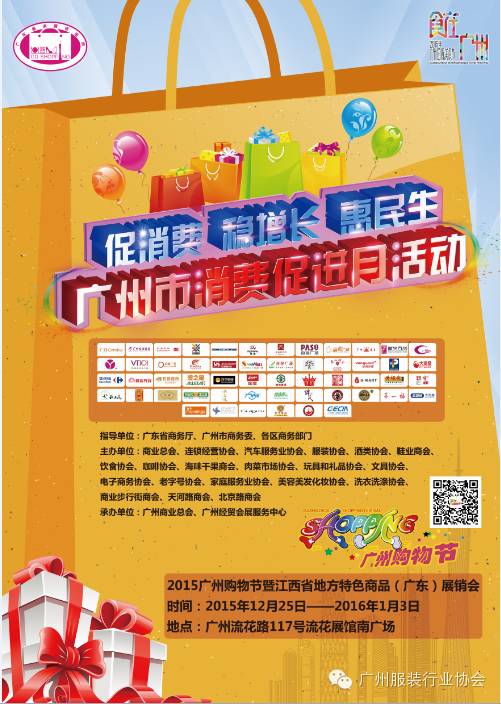 年底各种展会接踵而至,正是市民囤年货、买新衣的好时机。由广州服装行业协会副会长单位广州经贸会展服务中心与江西省商务厅联合主办的“2015广州购物节暨江西省地方特色商品(广东)展销会”将于2015年12月25~2016年1月3日在流花展馆南广场拉开帷幕,名品汇聚、特惠专场,引领疯狂扫货热潮。广大识货的精明一族,赶紧趁着这个全年至划算的品牌盛会,前往抢购吧!