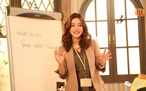 女主在剧中,是个日本“新东方”老师,满满的OL形象,职场达人却干练中也不失女人味。茶色的西装外套(比起纯黑的西装外套来讲,这样柔和的颜色更惹男性同胞欢迎,他们会认为这样的女生给人柔美亲切的感觉)。里面所穿的衬衫不是常规白衬衫,而是改良式墨绿色衬衫。