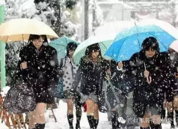 在日本,从小学到高中毕业,除了体育课以外,从小到大十几个春夏秋冬都是穿着学生裙——就是学校制服,风雨雪无阻。上身穿着很厚的衣服,下身穿短裙,膝盖以下的小腿部分有厚毛巾袜保护。