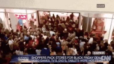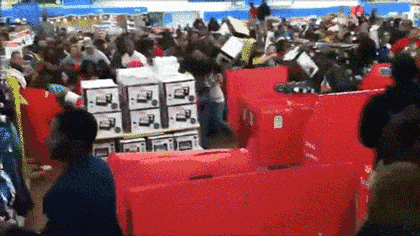 我们来感受一下前几年“黑五”歪果仁疯狂抢购的动图吧!(一点都不亚于中国双11 购物狂欢节,而且他们还会通宵排队。)