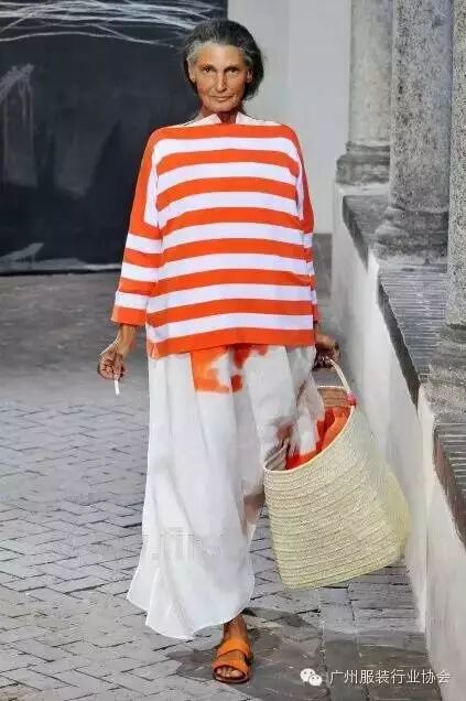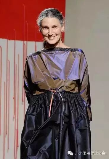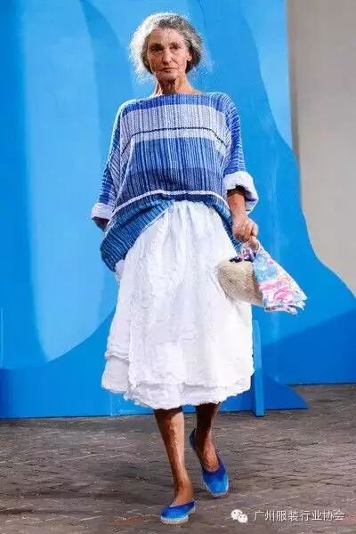 近两年的意大利时装周小众品牌DanielaGregis秀场上经常会看到一个满头银发的模特儿身影,她穿一身的地中海蓝,身材依然瘦削,情绪饱满,指尖有时还夹支烟,几乎一出场就把其他“孙女”级的稚嫩模特们比下去了:
