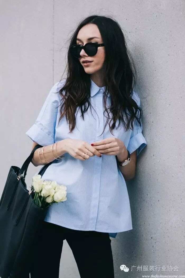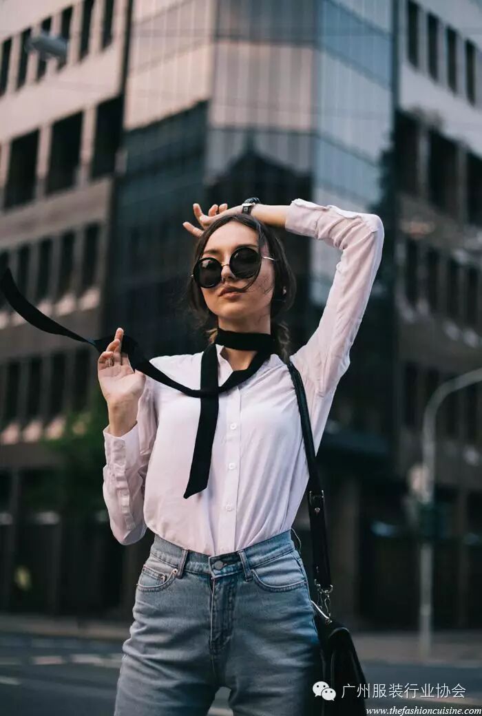 15、质感好的白色衬衫,白色可衬托花纹类配件的质感与色泽。