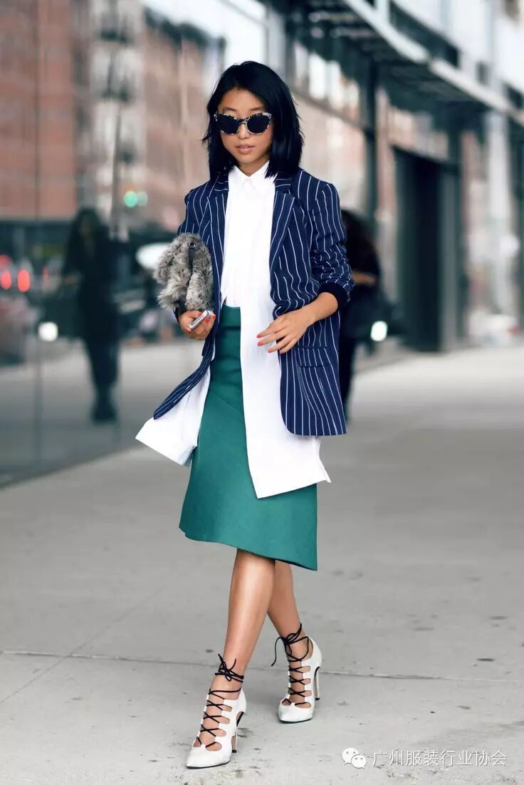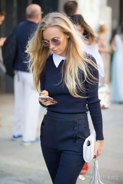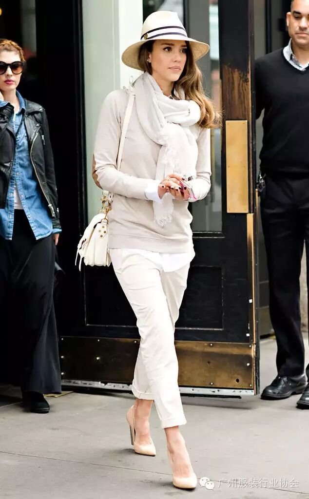 一般来说,上装颜色深重,下装颜色浅淡是不可取的,这会给人头重脚轻的感觉。(下图为正解)