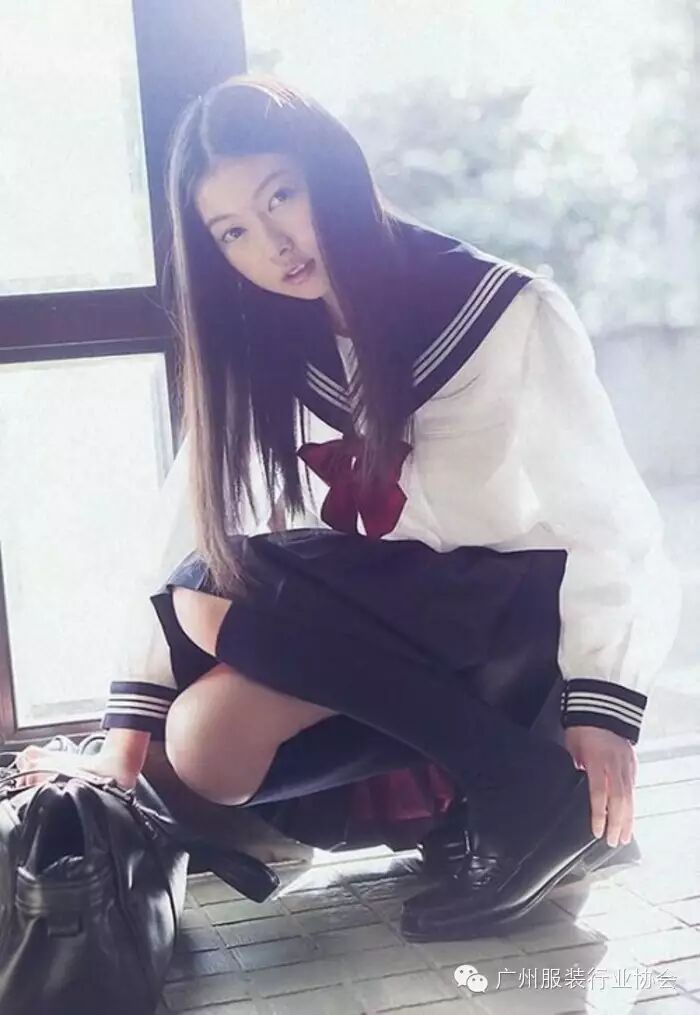 深色长袖水手服---虽然水手服饰最老套的校服,但比起西式校服,水手服会更可爱清楚的感觉。
