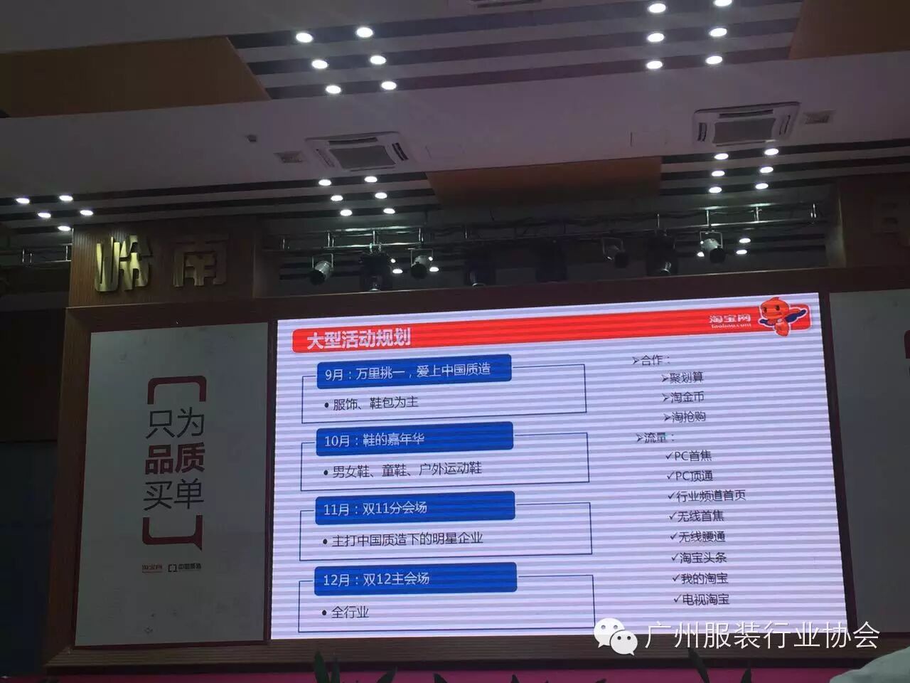 见面会讲述了中国质造将如何为传统的产业升级。现场由中国制造项目总经理对“中国制造”项目介绍、 中国制造资深营销专家讲述中国制造营销规划(服装服饰、箱包、电器、家居)、广州福野鞋业总经理分享中国制造“广货网上行”鞋企转型经验、淘大课程中心运营总监介绍淘宝大学课程内容以及与类目小二对话等。