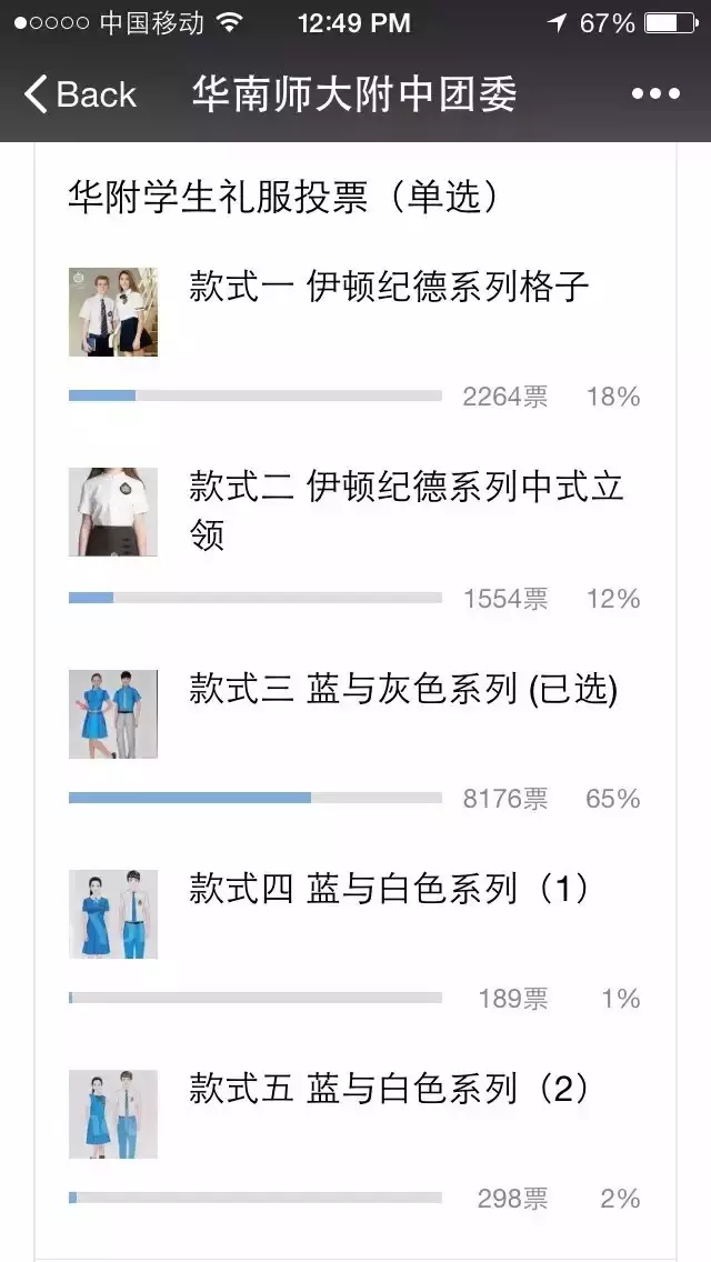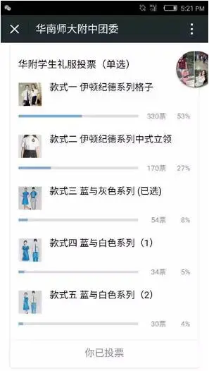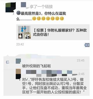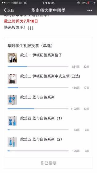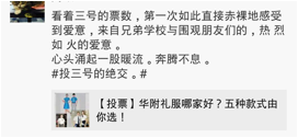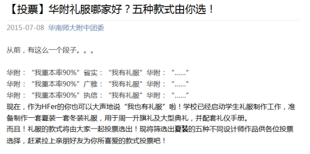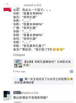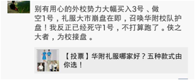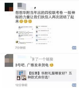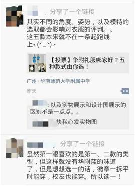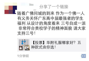 原来,华附征集礼服方案一事在微信朋友圈经过多轮转发后,广州各大中学的校友也加入了投票的行列中。