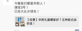 华附学生和校友都灰常嗨心啊,刷刷刷毫不犹豫地纷纷投给了一号和二号英伦风!