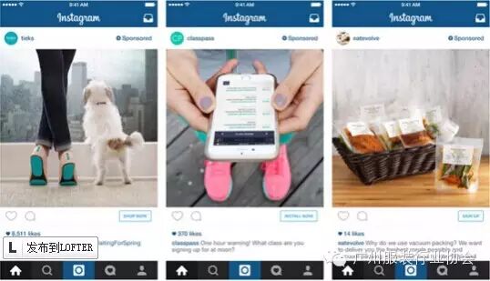 上线5年的 Instagram 近期加快了赚钱的步伐,今年3月他们刚刚推出广告轮播(carousel ads)功能,广告商可以发布由 4 张照片组合成相片集。在此之前,Instagram平台上已经有图片、视频等形式的原生广告。
