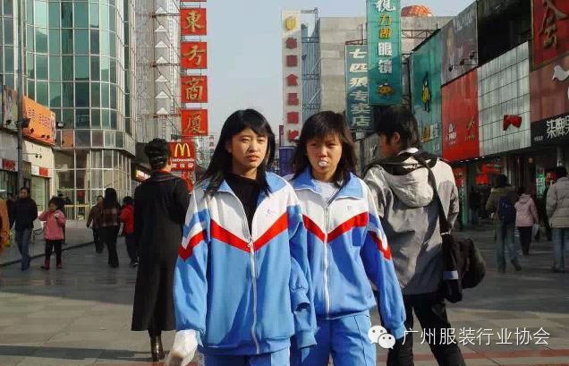 2005年11月26日,吉林市,两名女学生穿着宽大的校服走在吉林市的河南街头,这一身服装是不是让很多80、90后十分眼熟?