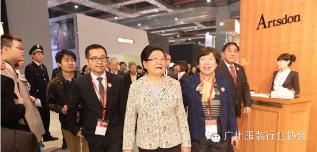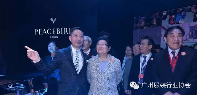 在本届CHIC 重磅推出的星光天地板块,领导一行接连在太平鸟、祺、劲霸男装、爱美丽、EP·雅莹、珂莱蒂尔 、YMOYNOT 展位参观,与品牌代表展开了国际设计趋势、高新技术运用等尖端话题的讨论。随后,又来到商旅男仕展区,参观了波司登男装、阿仕顿、杉杉等品牌展位,了解服装版型与零售发展等问题。