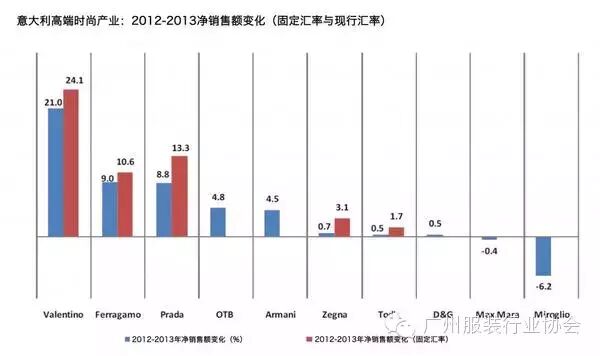 特别值得一提的是:2012年当意大利制造业销售收入整体下降 1.9%时,这 135家公司的销售收入逆势增长 1.4%,其中的顶级品牌的销售收入更增长了 4.4%。