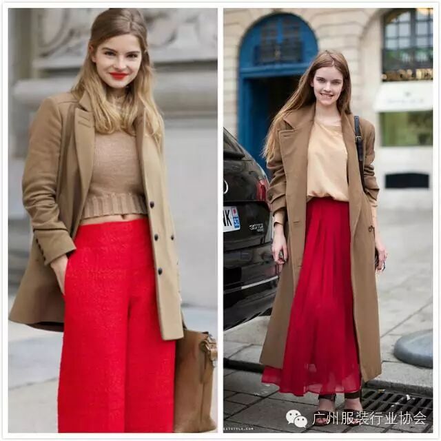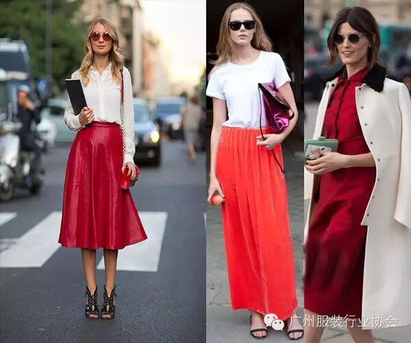能从图片上看到,洁净的白色能够在视觉上削弱红色给人的强烈冲击,将热烈的感觉变得有点小清新,比较适合夏天。但是一旦是深红色搭配白色,就能将秋冬的深色做一个提亮,会让人整体变得不那么沉闷。
