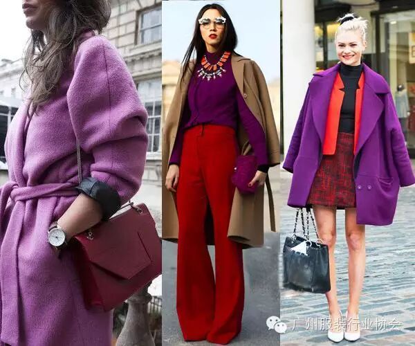 虽说大红大紫一直以来都是一个寓意比较好的褒义词,但是一般情况下人们对于服装颜色的搭配时除了红绿搭配也会尽量避免这两个色的搭配。但是掌握住其中的度,红色与紫色的搭配能提升高贵感,增强气场。其中一条就是你多我少,一个作为主色,一个作为点缀。第二种就是加入少许第三种色,例如黑色,这样能削弱红色与紫色在视觉上直接的碰撞。