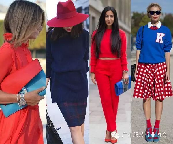 相比起其它颜色来说,红色和蓝色的搭配更显庄重。在一些比较正式的场合除了红色和黑色搭配之外,就是和蓝色搭配。冷静的蓝色和活泼的红色搭配能够将两种色彩的有点更好的结合起来,让人稳重中又体现出积极。不过红色和蓝色也是视觉感极强的碰撞色,搭配时也要注意两者的比例。例如穿着红色连衣裙时可以搭配一款蓝色的手拿包或者单肩包,冬季时也可戴蓝色的帽子等等。