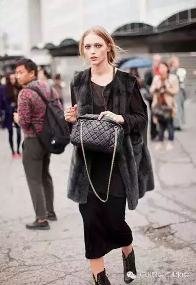 皮草马甲和系带踝靴是薄纱长裙的黄金伴侣。皮革、皮草、薄纱的多重材质混搭能瞬间凸显你的时装品味之外,更是可以令你自带天然超模范儿。