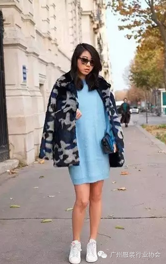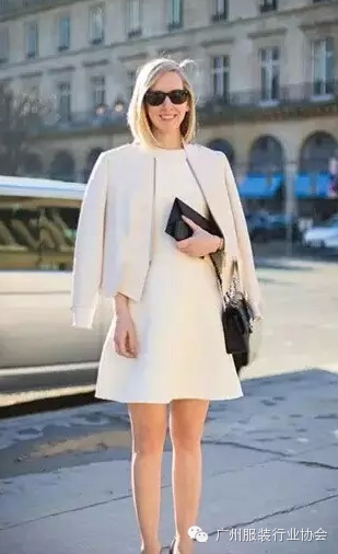 直通略带茧型的连衣裙搭配同样茧型的外套和风头正劲的Sneakers正是混搭运动风,约会派对,宜动宜静。