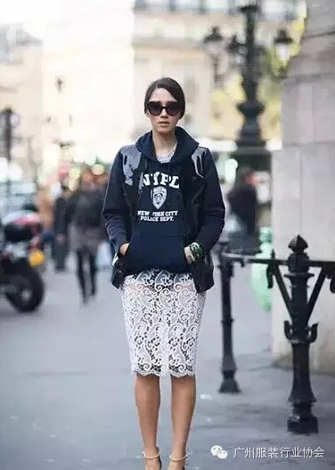 “兵行险招”地搭配连帽卫衣,恰巧搭上时下猛吹的“运动风”之外,更是别出心裁,轻松打造“Efforless Chic”的随意性感造型。
