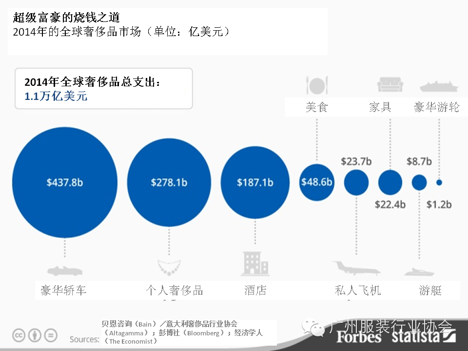 当今时代的亿万富豪人数创历史新高,因此近年来的全球奢侈品市场规模也顺理成章地出现了显著增长。2014年,全球奢侈品支出总额刚刚突破1万亿美元。