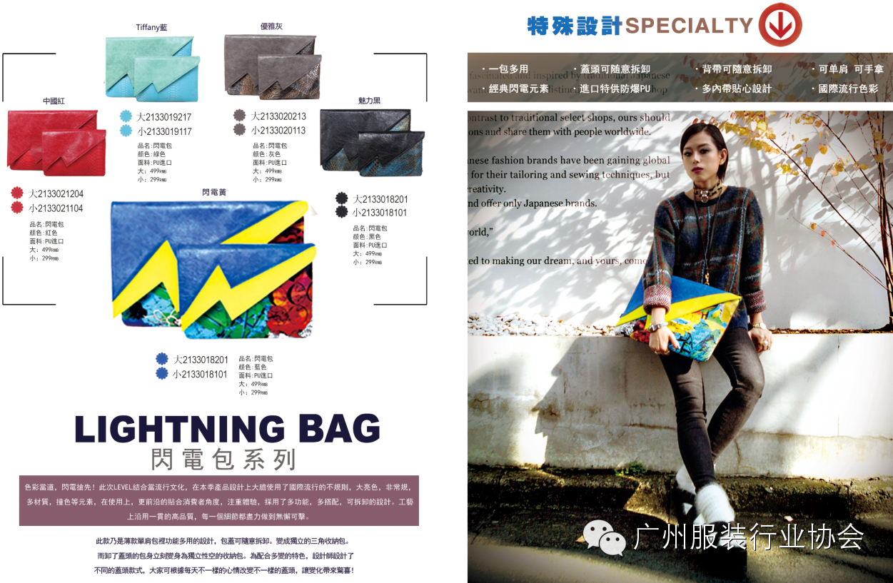 融合了LEVEL(烈威)品牌特色的閃電包,乃是薄款單肩包裡功能多用的設計,包蓋可隨意拆卸。變成獨立的三角收納包。為配合多變的特色,設計師設計了不同的蓋頭款式,大家可根據每天不一樣的心情改變不一樣的蓋頭,讓變化帶來驚喜!系列五款包身採用秋冬大熱壓印蛇紋高級PU,色彩方面除了純色外,更有集高端、大氣、上檔次于一身的幻彩色!