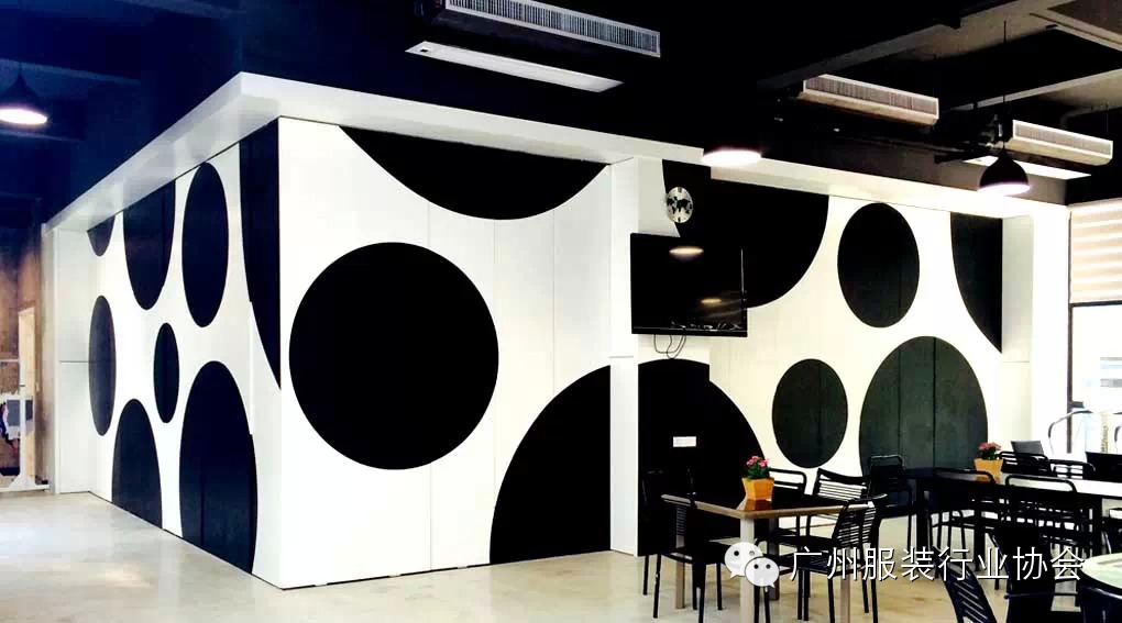 开放式的厨房与餐饮区是一个可以将员工聚集在一起的地方,这个空间最主要的位置安放了几个巨大的桌子。园型大波点折叠墙壁是公司中央大会议室的墙面,可折叠的门开启后,会议室则与餐区形成一个大区间。解构与重组的自由设计,融入细节,轻松随性,又享时尚活力。