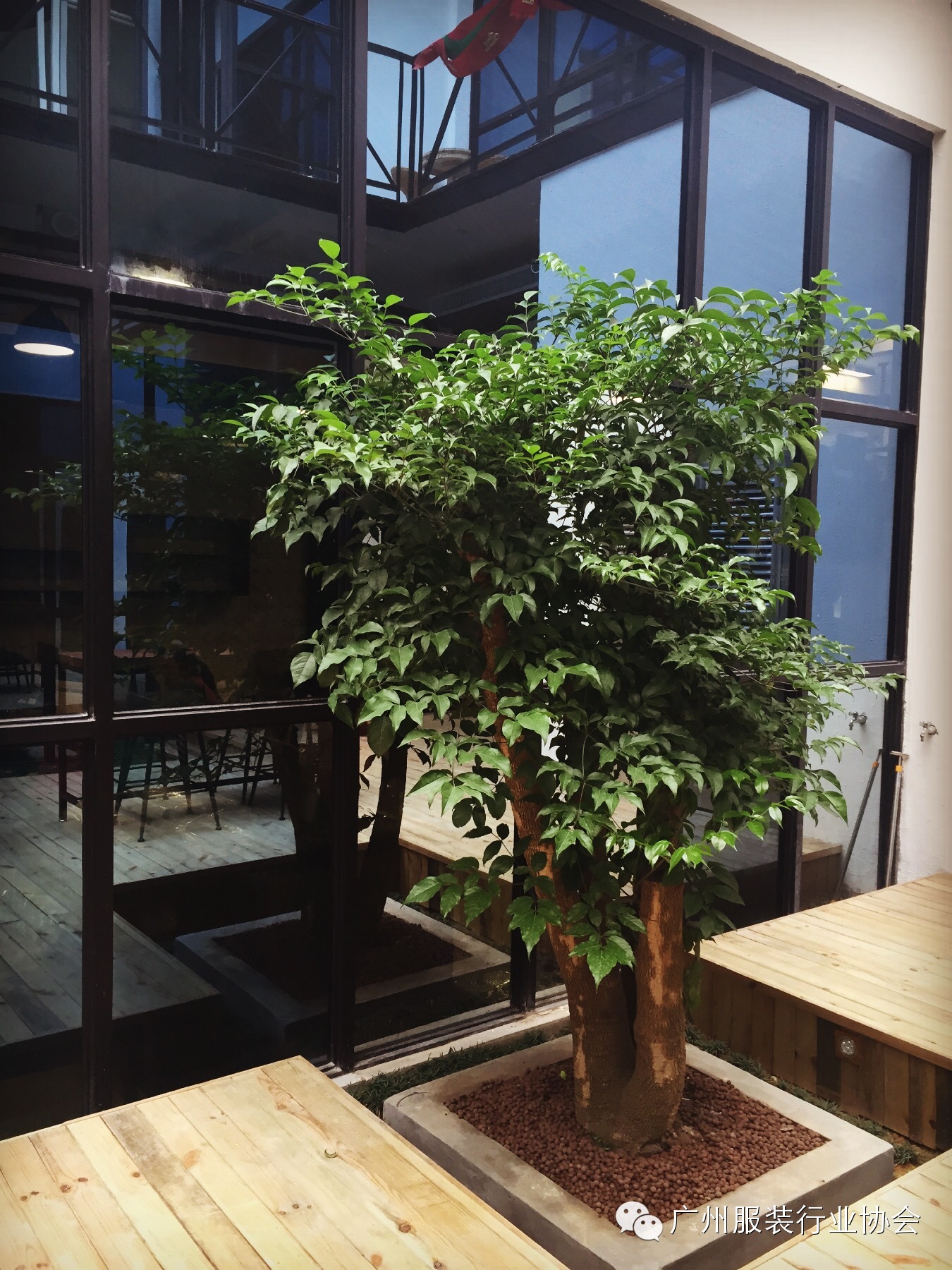 天井休息区是完全不同的空间,绿地与植株树木作为装点,原木色地板和布艺沙发,或者是黑色的餐吧椅都是工作之余休闲的舒适之选。