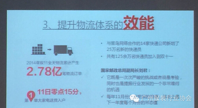➋提升银行与支付宝支付抗压能力,双11每分交易285万笔,比去年提高3倍➌提升菜鸟物流统筹能力,125万快递员参与双11,新增25万快递员