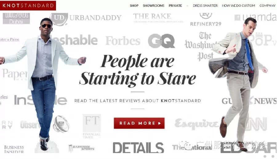 Knot Standard通过3D图像获得精准尺寸,打造手工缝制西服。在多个城市设有线下实体展示店如纽约、迪拜、华盛顿等。