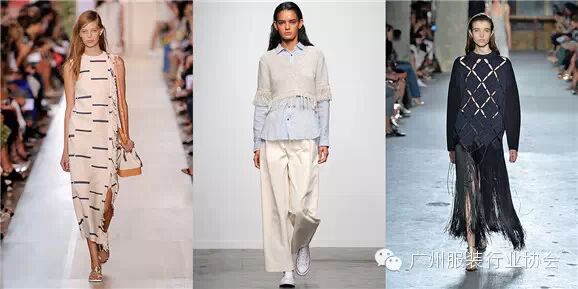 无论是故意磨损的毛衣流苏、20年代风情的复古流苏裙,流苏是非常能凸显着装者精神和性格的元素,不想平凡简单,又不想太过火的造型,可以尝试在简单基本款上加流苏元素,效果会很惊喜。