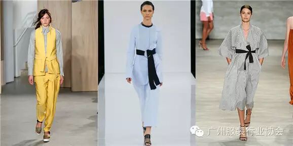 丝带束腰是2015年春天的必备,懂得扎成柔道服腰带的样子就更聪明啦,为超宽松剪裁的外套做最佳点睛,腰线多美啊。