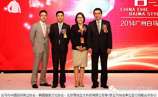 在全场300名嘉宾的共同见证下,白马与中国百货商业协会、韩国服装文化协会、北京易观亚太科技有限公司等3家业内知名单位结成战略联盟,为白马品牌争取更多跨国、跨界资源。