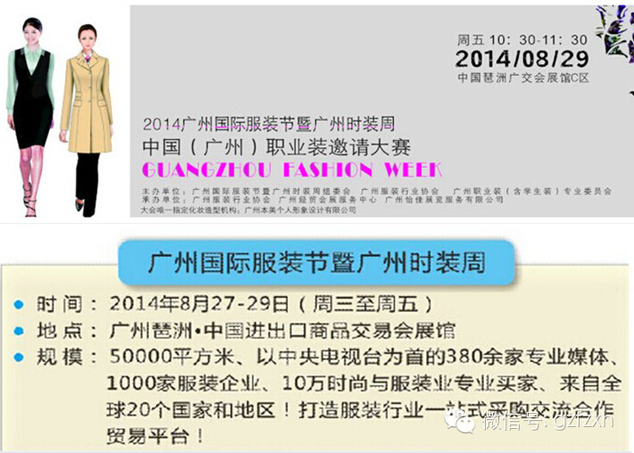 2014年中国(广州)职业装邀请大赛正在顺利筹备中,并将于8月29日上午10:30-11:30在琶洲广交会展馆C区举行,本次参赛并入围的企业将会自动成为广州服装行业协会职业装(含学生装)专业委员会的成员。