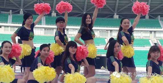 十几位“足球宝贝”自发到活动现场当拉拉队员。