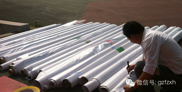 因为全世界还没有任何一台喷绘机器,能一次完整的制作这么大面积宣传品。我们不得不找供应商帮忙,选了40条长28米、宽3米的灯布来喷绘,光布料重量超过了一吨。。。