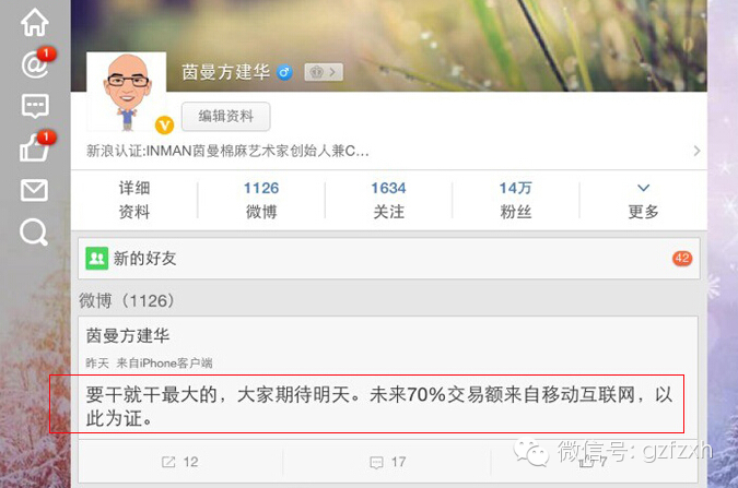 年初,天猫邀请我们成为码上淘第一批试点品牌,目前微淘粉丝271万。韩后老王还跟我犟,说不信未来五年移动互联网的势头,我认为五年70%的占比,绝非天荒夜谈。