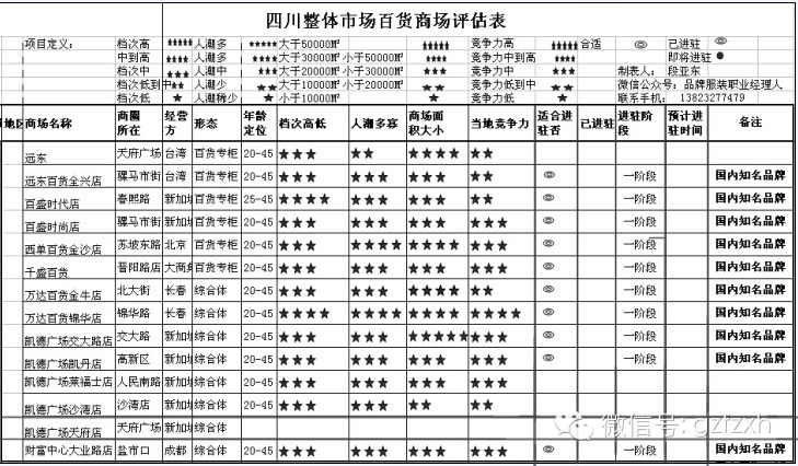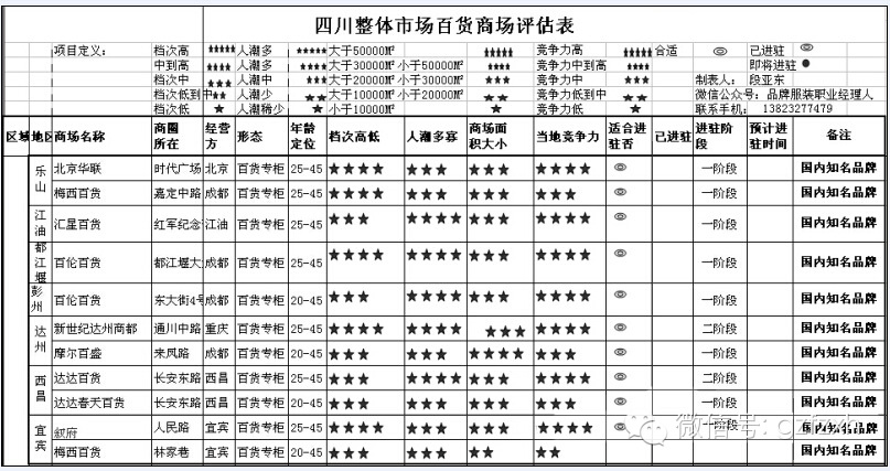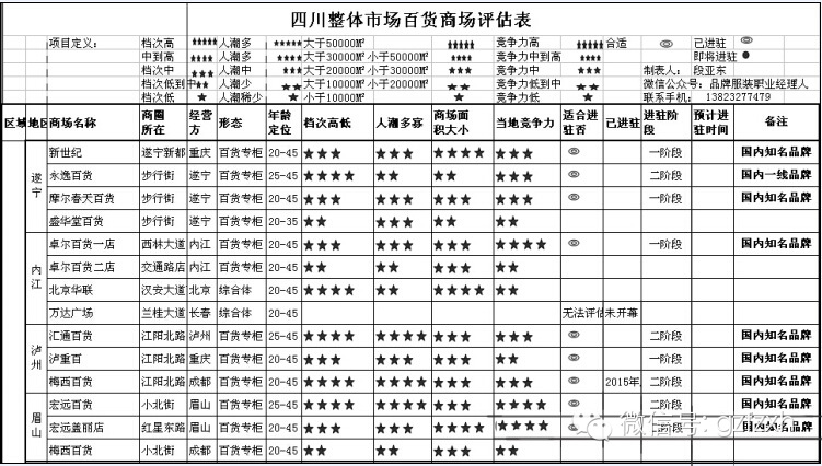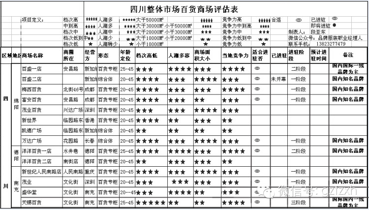 四川1个副省级城市,17个地级市,17个县级市,3个少数名族自治区;183个县城;以下针对地级市及省城的百货商圈进行整体评估,为服饰行业的品牌供应商、代理经销商、行业内的服装精英提供市场评估依据。