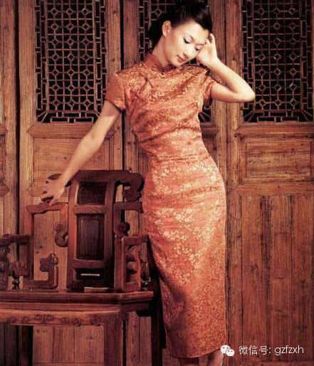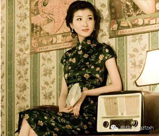 旗袍(cheongsam or qipao)是中国女性的一种传统服装。旗袍起源于满族服装(Manchurian garment),于民国时期成为上海女校的制服。20世纪上半叶其款式融入西式剪裁而被大幅度改进。旗袍因其代表新时代知识女性的形象而受到欢迎,由上海开始流行至全国,成为民国时期都市妇女的主要服装。其特征是立领(stand collar)、右大襟(right side opening)、紧腰身(fitting waist)、下摆开衩(slitting on hem)等。