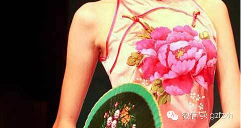 旗袍的前胸、领口、袖边等位置通常会点缀各种刺绣图案,如龙(dragon)、凤(phoenix)、牡丹(peony)、梅(plum blossom)、兰(orchid)、竹(bamboo)、菊(chrysanthemum)、莲(Lotus)等具有中国传统特色的图案。其中苏绣(Su embroidery)、湘绣(Hunan embroidery)、蜀绣(Sichuan embroidery)和粤绣(Guangdong embroidery)的绣品最为精良名贵。