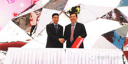 程九洲总经理(左)与天雅女装市场总经理程文龙签订合作协议