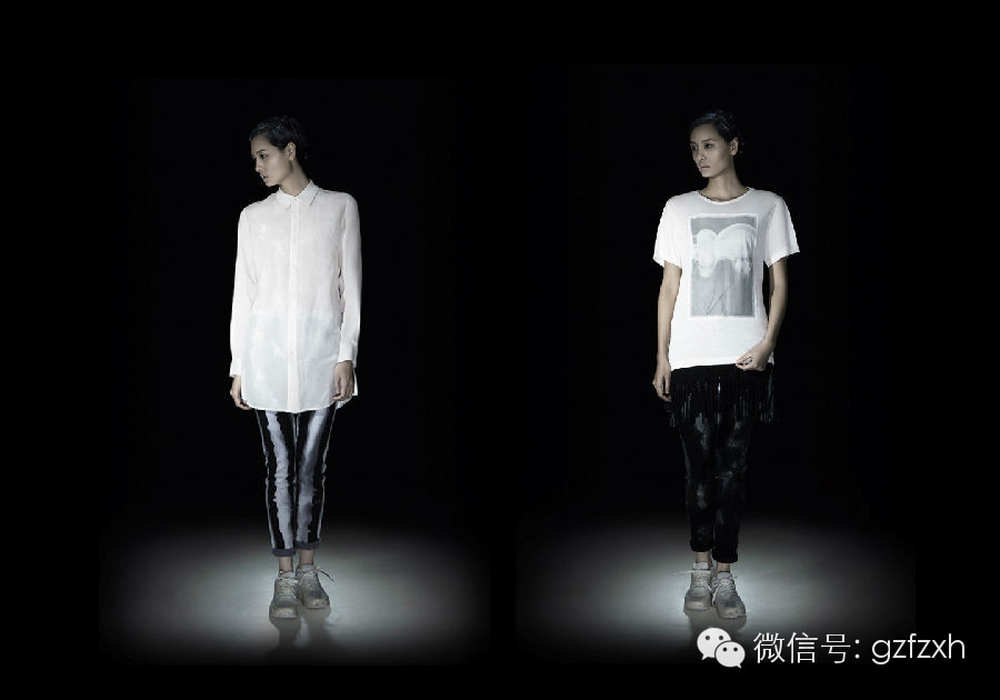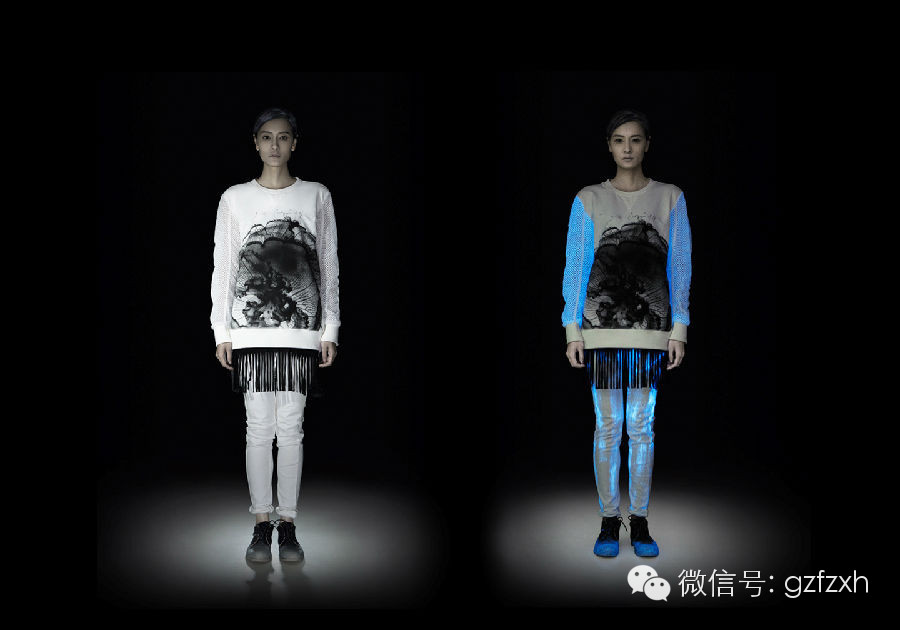 版型上采用oversize的廓形设计强调轮廓。款式多样,有See through的宽松卫衣、流苏下摆紧身上衣,色彩浓烈的水母印花衬衫,近年大热棒球外套,夜光镂空网状袖子是设计是不可忽视的设计亮点,还有夜光涂料的修身长裤及发光的马丁靴和球鞋,保证让你无论在白天还是夜晚都更加夺目出彩!