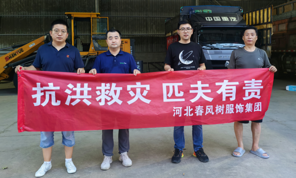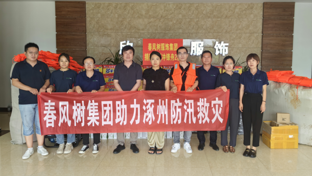由于极端强降雨天气和上游河道过境等因素,造成了河北省涿州市内涝风险加剧,防汛形势十分严峻。自极端天气发生以来,河北省纺织与服装行业协会副会长单位——河北春风树服饰集团有限公司党支部书记、董事长王海宾先生、总经理杨兴丽女士对灾情高度关注,在8月1日看到涿州灾情的相关报道后,积极响应协会党支部的号召,第一时间带领集团发扬“一方有难、八方支援”的大爱精神;紧急组织物资,向受灾地区伸出援助之手并参与到抗洪救灾捐献爱心行动中,以实际行动诠释了企业的社会责任和奉献爱心的精神。