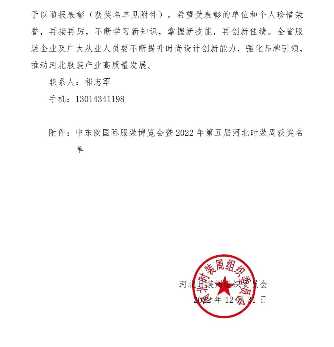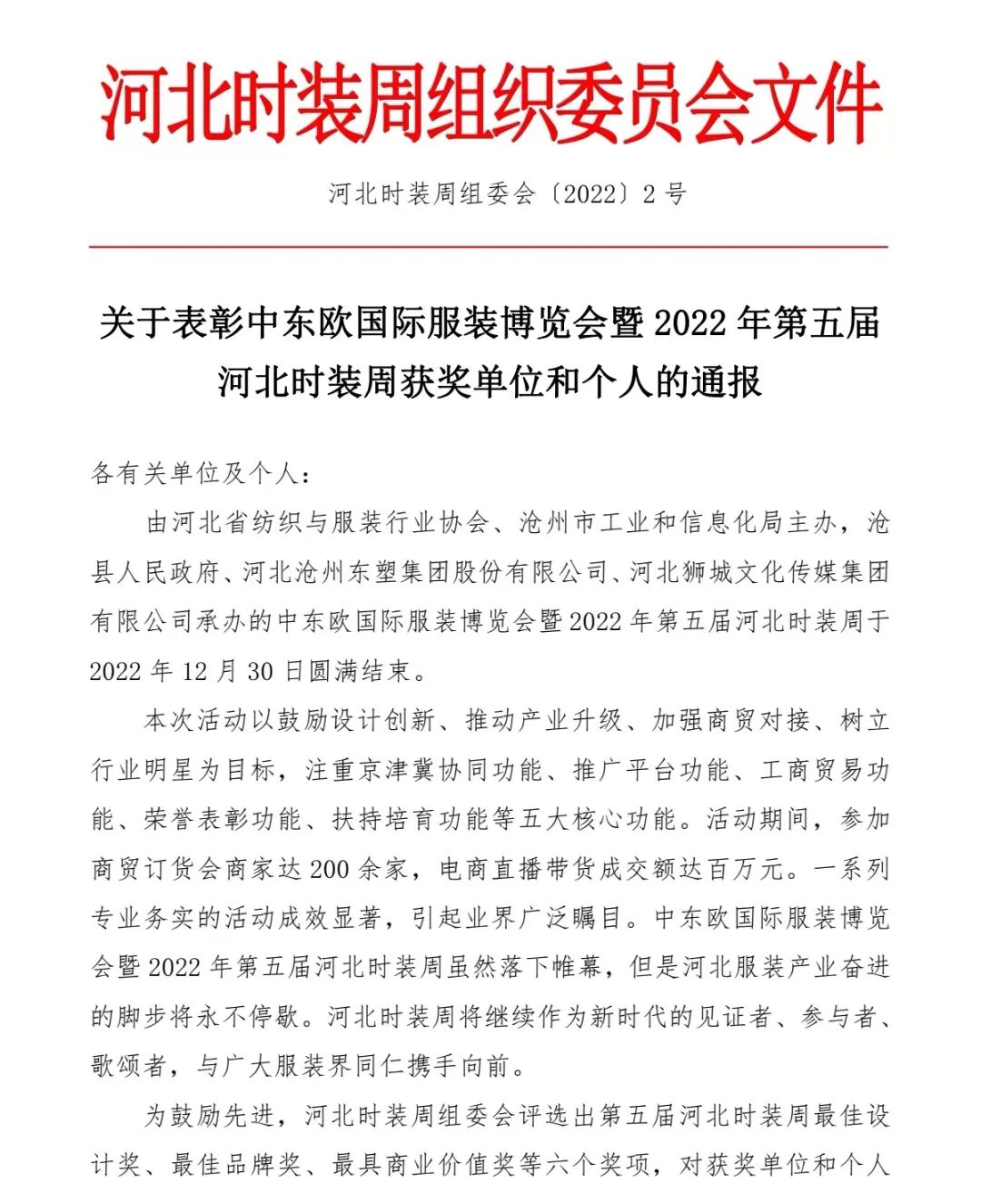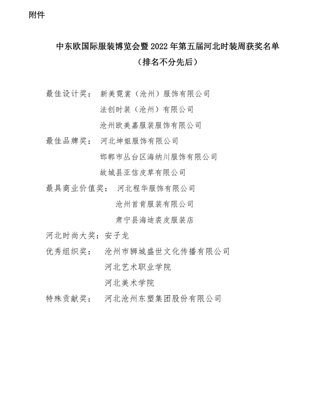 关于表彰中东欧国际服装博览会暨2022年第五届河北时装周获奖单位和个人的通报