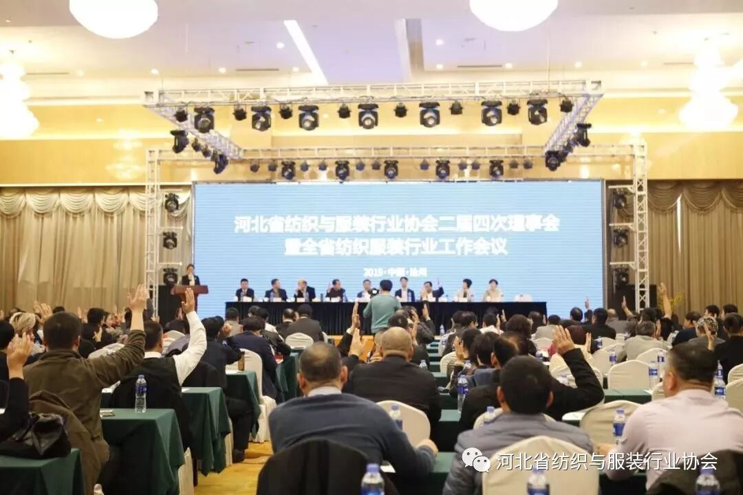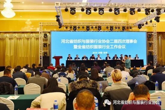 河北省纺织与服装行业协会二届四次理事会暨全省纺织服装行业工作会议于11月28~29日在沧州市隆重召开。中国服装协会常务副会长杨金纯、河北省纺织与服装行业协会会长刘连红、驻会副会长魏拥军、河北省工业和信息化厅分管领导尹修亮、消费品工业处副处长谷米、河北女子职业技术学院党委书记郭丽萍、河北省服装商会会长杨壹名、沧州市工业和信息化局局长王丙林、沧州东塑集团董事长于桂亭、明珠国际服装生态新城、明珠商贸城总经理郭志、雄安新区和部分市县工信主管部门负责人、纺织服装相关行业协会(商会)负责人、纺织服装产业集群负责人、省纺织与服装行业协会理事、省内高等院校纺织服装相关专业负责人、纺织服装企业负责人等约200人参加本次会议。