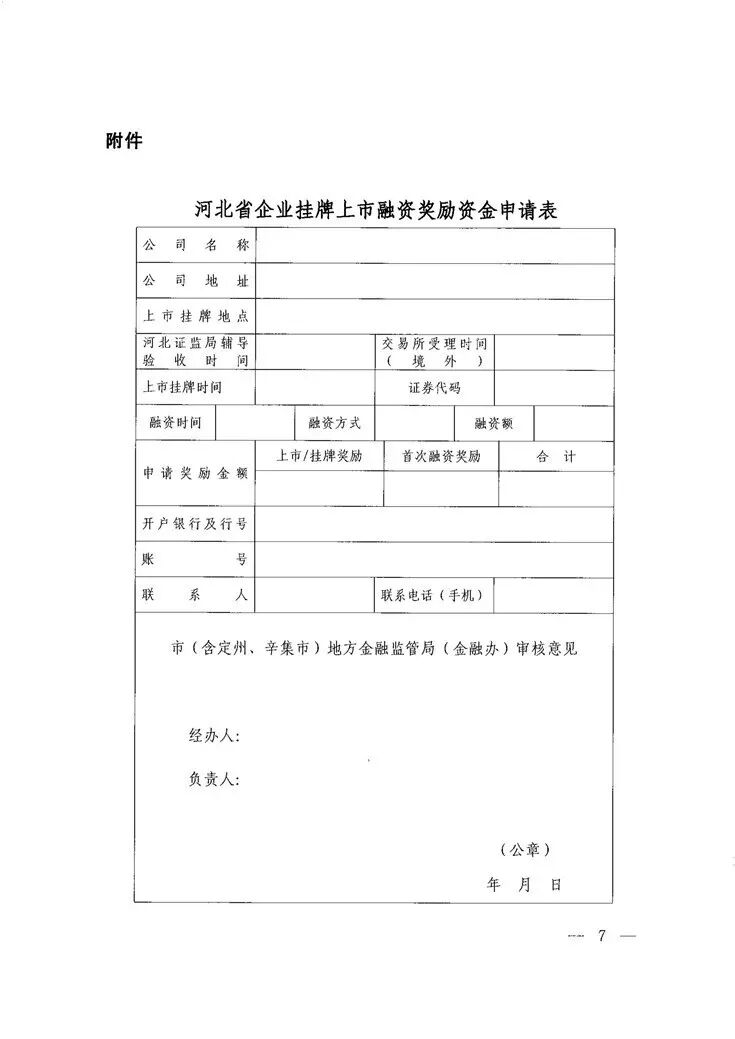 (一)河北省企业挂牌上市融资奖励资金申请表(见附表);