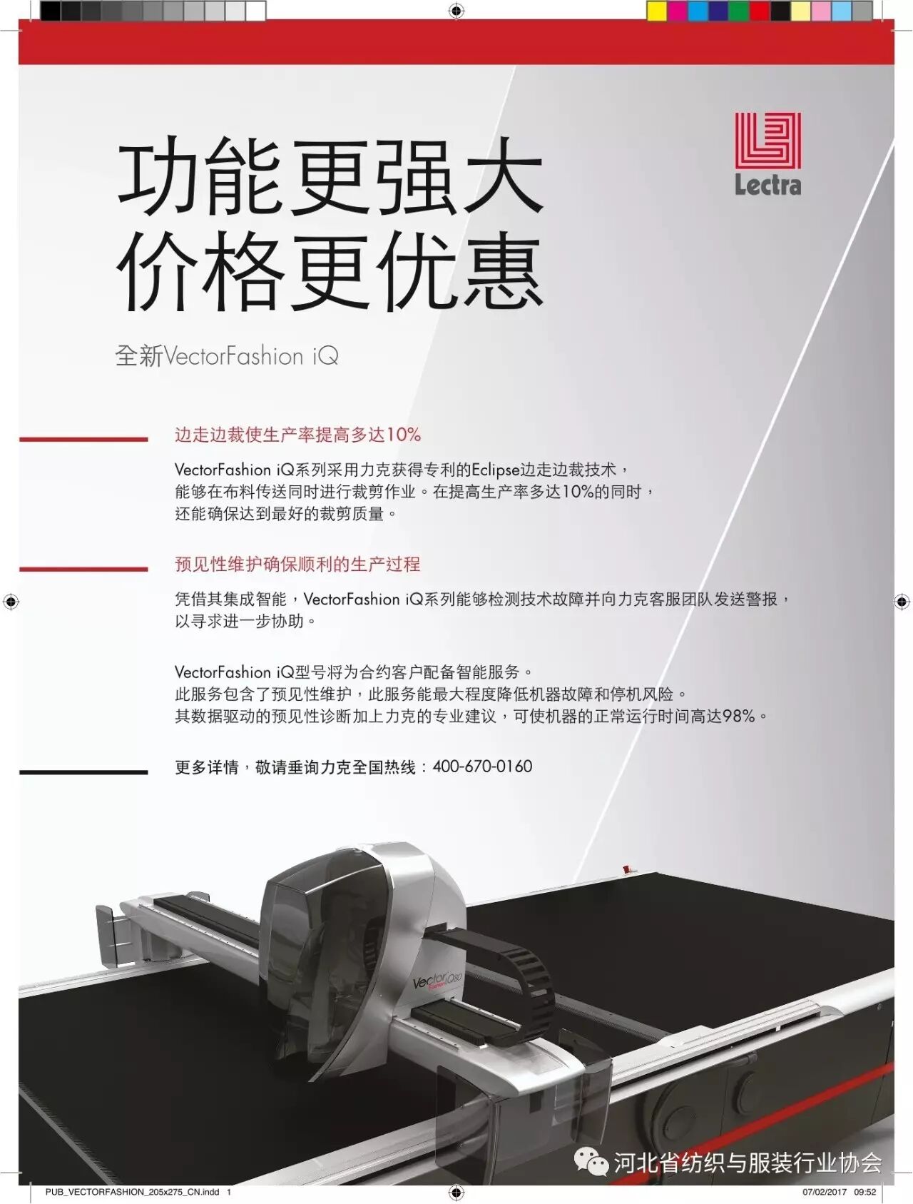 据介绍,力克最新型号VectorFashioniQ系列裁床采用获得专利的边走边裁功能,可在确保生产质量的前期下,使生产率提高多达10%;力克提供的预见性维护还能最大程度降低机器停机风险,避免因意外停机而造成的经济损失。