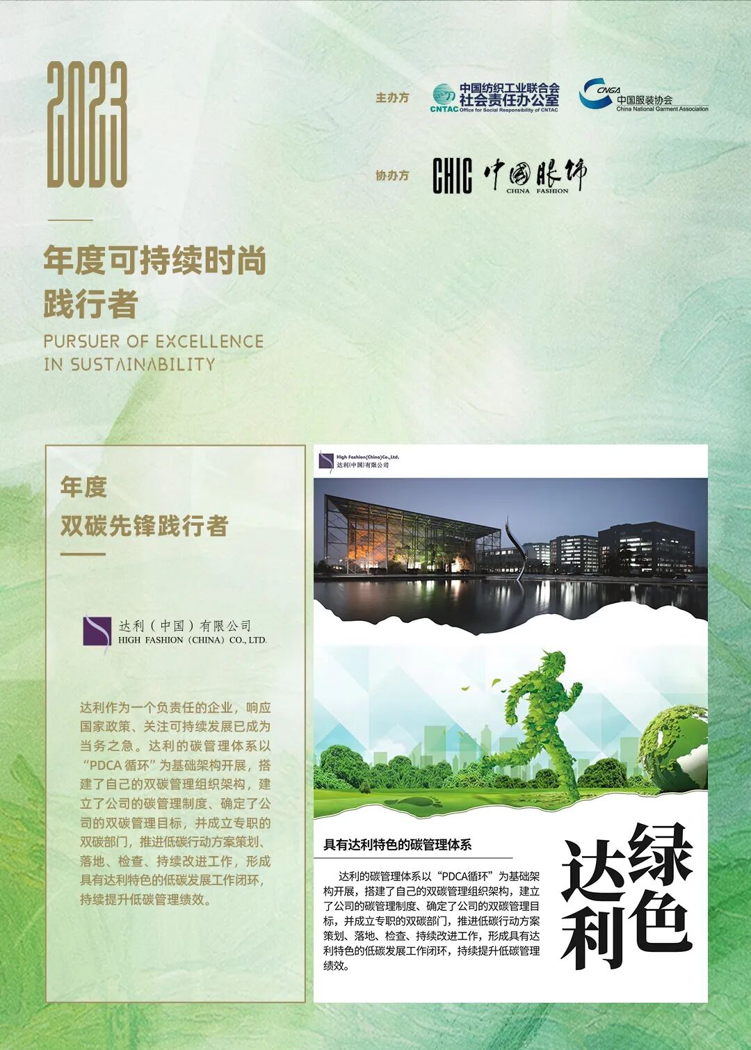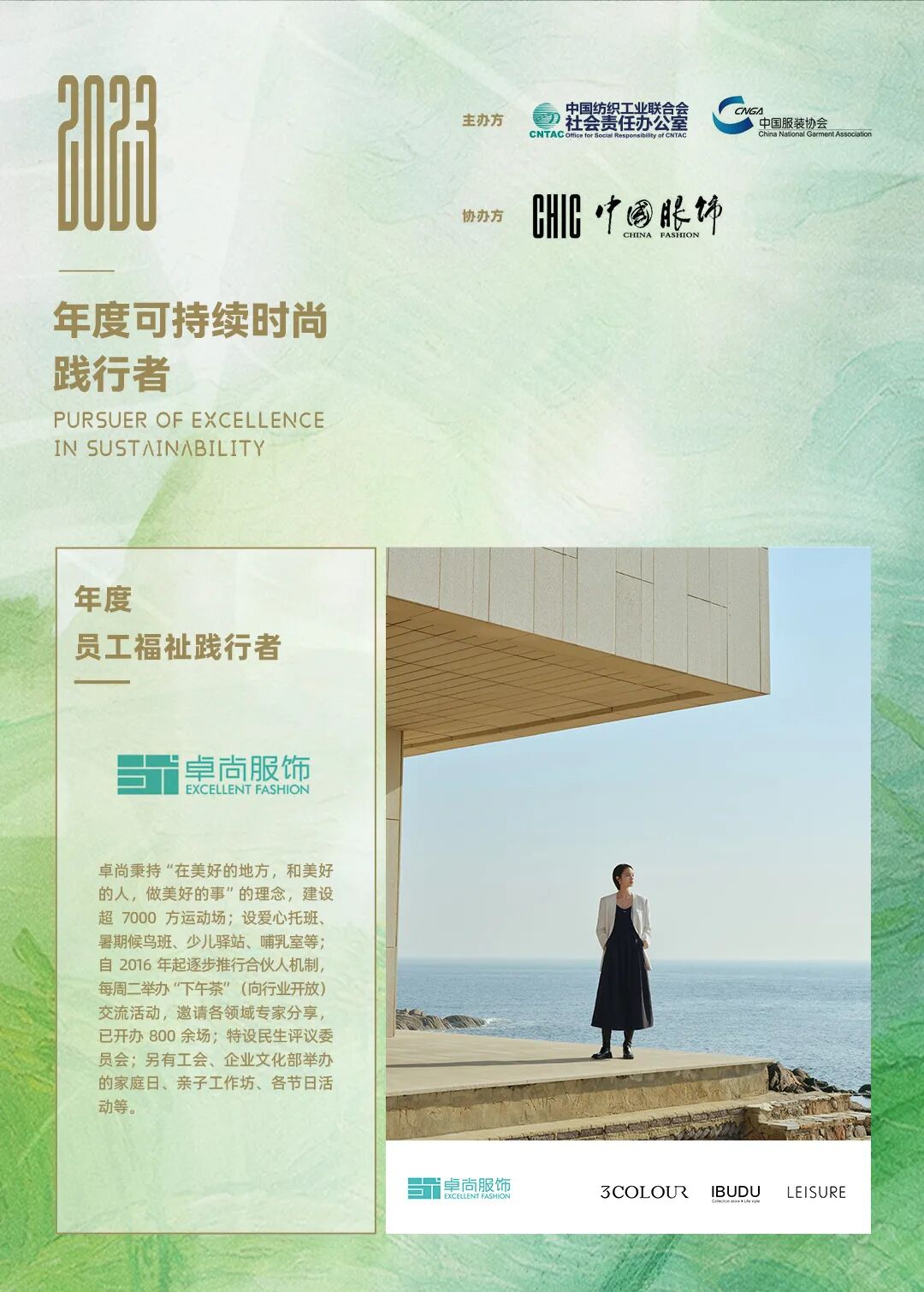 《2023可持续时尚践行者名录》已经正式发布!此届盛会由主办方中国服装协会、中国纺织工业联合会社会责任办公室,和承办方中国国际服装服饰博览会(CHIC)、中国服装协会会刊《中国服饰》联合委派10位来自官、产、学、研领域的权威专家组成“可持续时尚践行者”评审委员会,历经为期两个月的时间,根据各家单位积极申报的材料评选出以加快建设贯穿绿色材料、绿色技术、绿色产品、绿色制造、绿色消费等全产业链的低碳绿色循环体系为目标、以身作则履行社会责任的优秀企业共16家入选名录。
