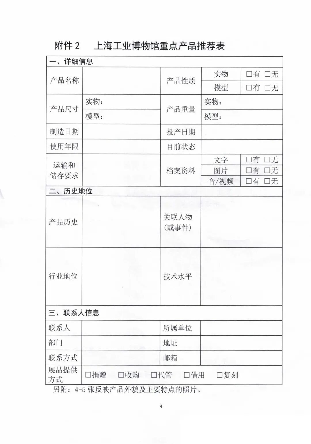 上海工业博物馆(以下简称:工博馆)的筹建工作正在紧锣密鼓地进行中,今年7月份将正式启动建设,为了充分展示上海工业的发展历程和辉煌成就,工博馆现正广泛征集上海工业发展过程中的重点产品、重要人物、重大场景和重要事件的相关实物和史料。