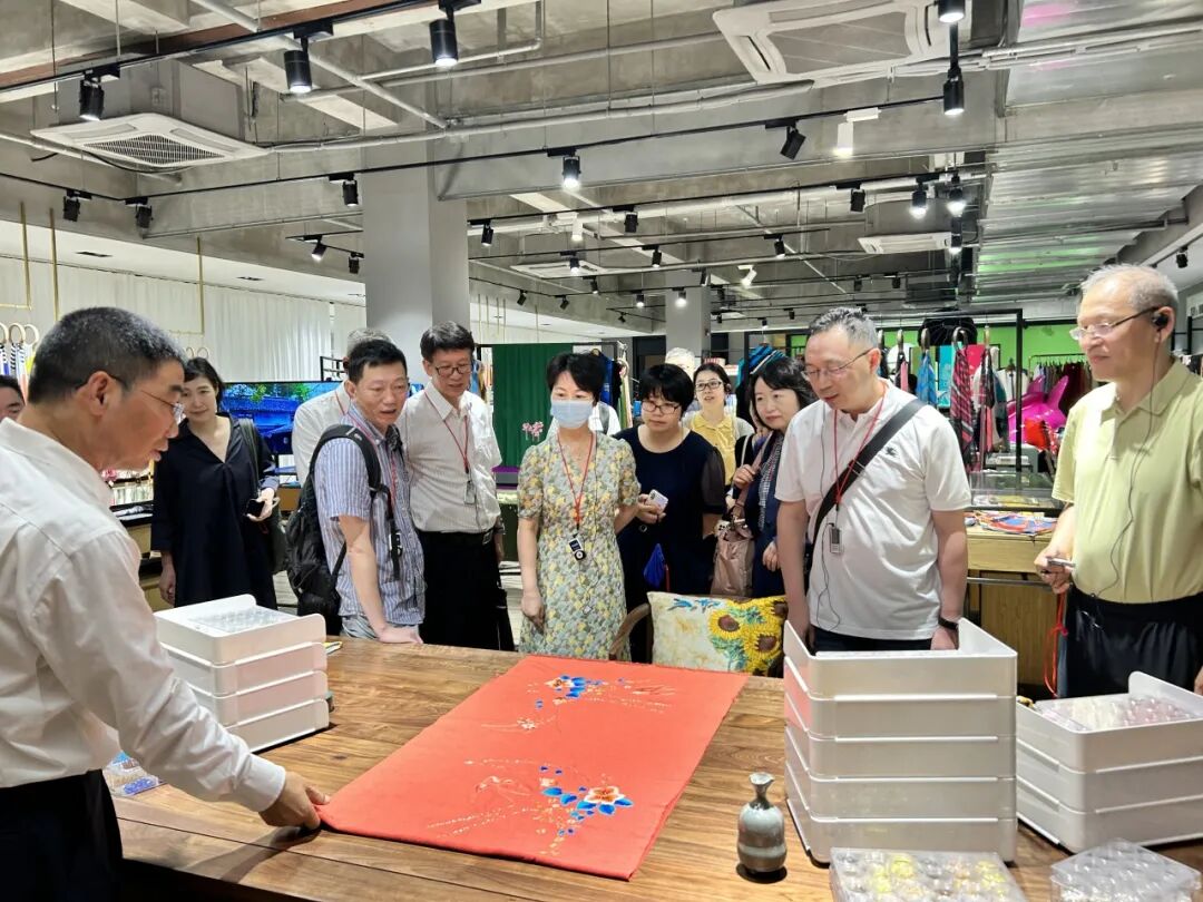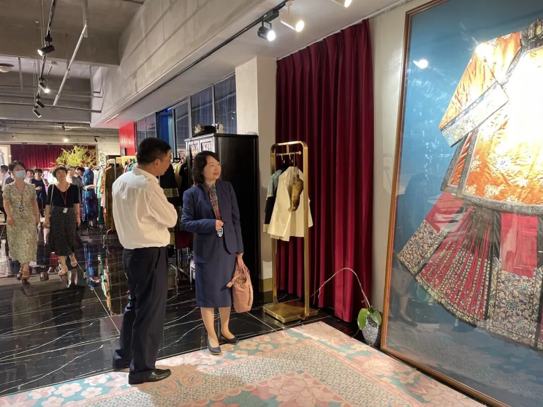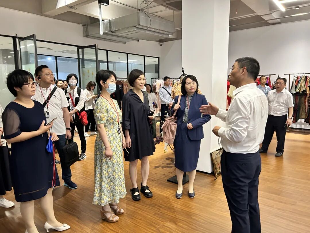 随后,参会代表赴纺织商会-花桥晨风时尚创意共建基地,参观共建基地各业务板块,包括设计研发中心、打样中心、面辅料中心、独立设计师工作室、北京服装学院晨风时尚产业学院、东华大学晨风时尚产业实践学院、直播电商中心、零售买手店铺等,详细了解基地依托“快速反应”供应链优势,集聚优势资源,打造集人才培训、设计研发、创新孵化、品牌建设、数字新零售等功能于一体的时尚创意生态圈建设情况。