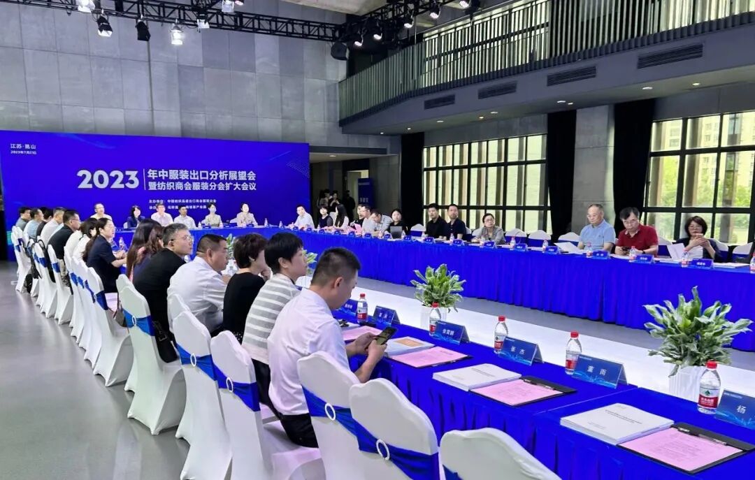 7月21日,中国纺织品进出口商会在江苏昆山召开2023年中服装出口分析展望会暨服装分会扩大会议。纺织商会副会长张锡安、商务部外贸司轻纺医药处一级调研员刘燕、纺织商会服装分会理事长尹国新、上海服装行业协会会长朱勇、江苏省服装协会会长龚慧娟等出席会议。包括本会会员单位东方国际集团上海市对外贸易有限公司党委书记、执行董事赵晓东,上海丝绸集团副总经理汪东民,东华大学服装与设计学院副教授肖平在内的全国40余家企事业代表出席会议并进行了交流分享。
