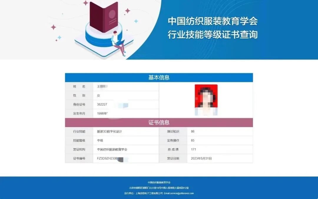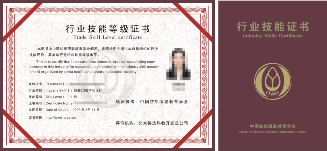 由中国纺织服装教育学会和和北京锦达科教开发总公司联合组织制定的《服装3D数字化设计职业技能等级标准》,广泛征求和吸收了全国职业院校、普通高校以及行业企业的意见,体现了纺织服装行业发展的最新趋势和岗位要求,为纺织服装数字化技能人才培养与考核提供了基本依据。服装3D数字化设计职业技能等级证书由标准制定者权威颁发,可在中国纺织服装教育学会官网查询,全国通用。