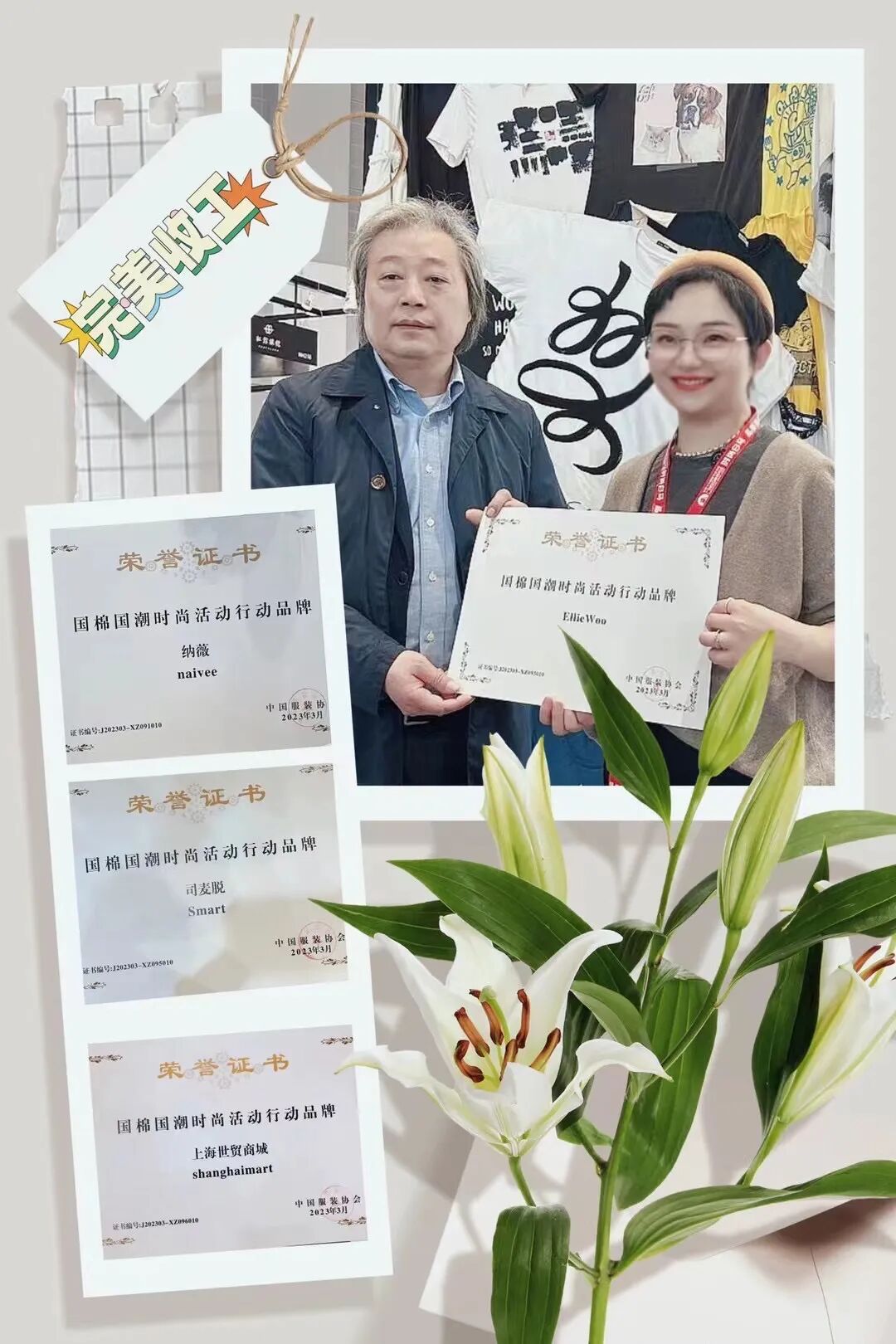 展会结束当日,中国服装协会副会长周一奇还亲自到展区为上海的四家参展单位颁发了“国棉国潮时尚行动品牌”荣誉证书。